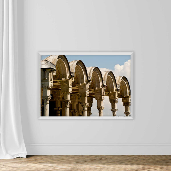 Bu fotoğrafın basım aşamasında; renk dengesine uyumlu olması sebebi ile dünyaca ünlü Hahnemühle Enhanced (mat) kâğıt üzerine, orijinal HP mürekkep kullanılmıştır. Renklerin daha doğru görülebilmesi için 2mm’lik Ultra Clear parlak Paşabahçe cam, tonal dengesiyle uyumlu olması açısından ise beyaz polistiren ithal çerçeve tercih edilmiştir.