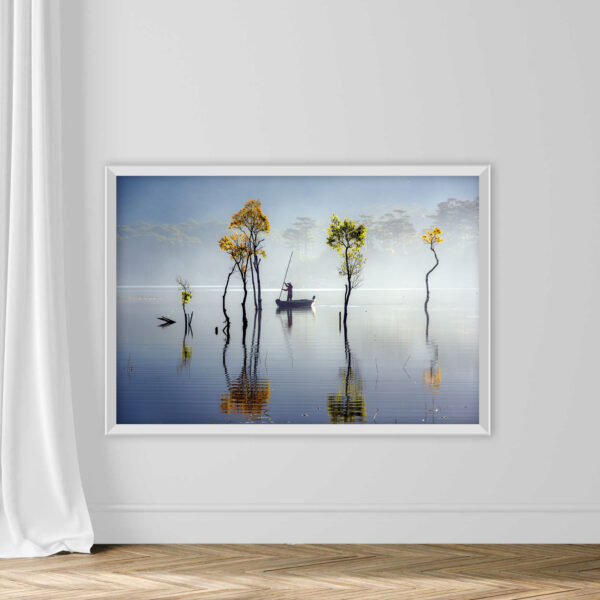 Bu fotoğrafın basım aşamasında; renk dengesine uyumlu olması sebebi ile dünyaca ünlü Hahnemühle Enhanced (mat) kâğıt üzerine, orijinal HP mürekkep kullanılmıştır. Renklerin daha doğru görülebilmesi için 2mm’lik Ultra Clear parlak Paşabahçe cam, tonal dengesiyle uyumlu olması açısından ise beyaz polistiren ithal çerçeve tercih edilmiştir.