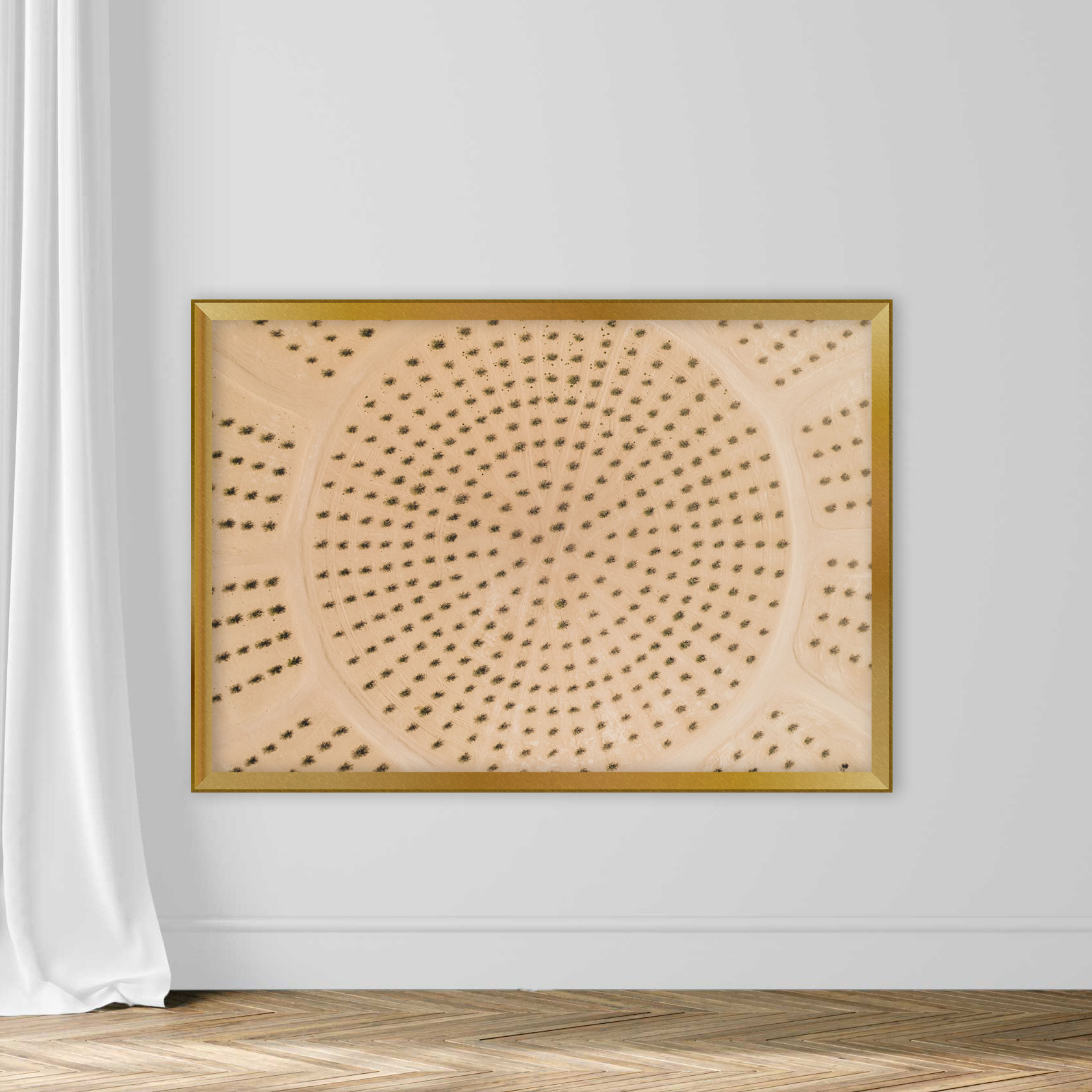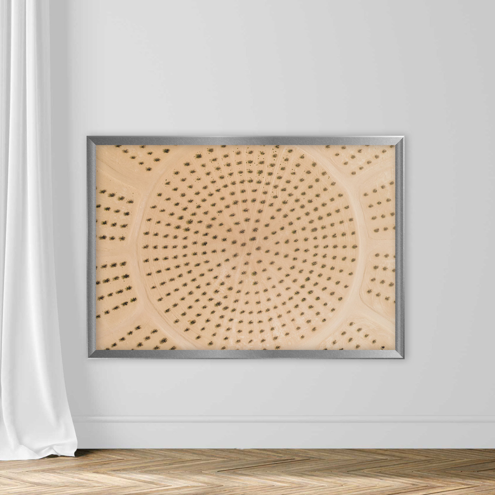 Circular shaped plantation of trees taken by drone, United Arab Emirates